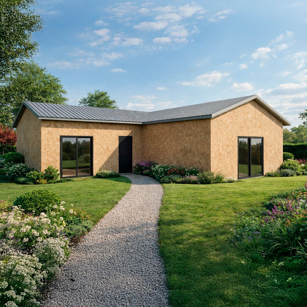 >Paneles perimetrales revestidos con OSB, tinglado o media luna, incluye barrera de vapor fieltro asfáltico.